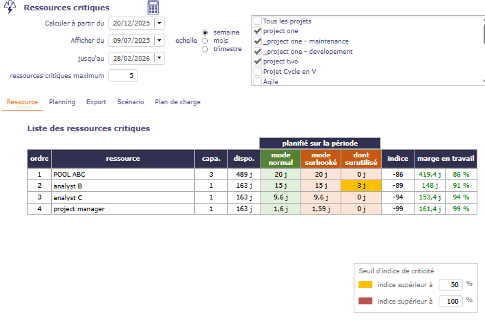 Construisez un planning capacitaire réaliste imbriquant plusieurs équipes sur plusieurs projets